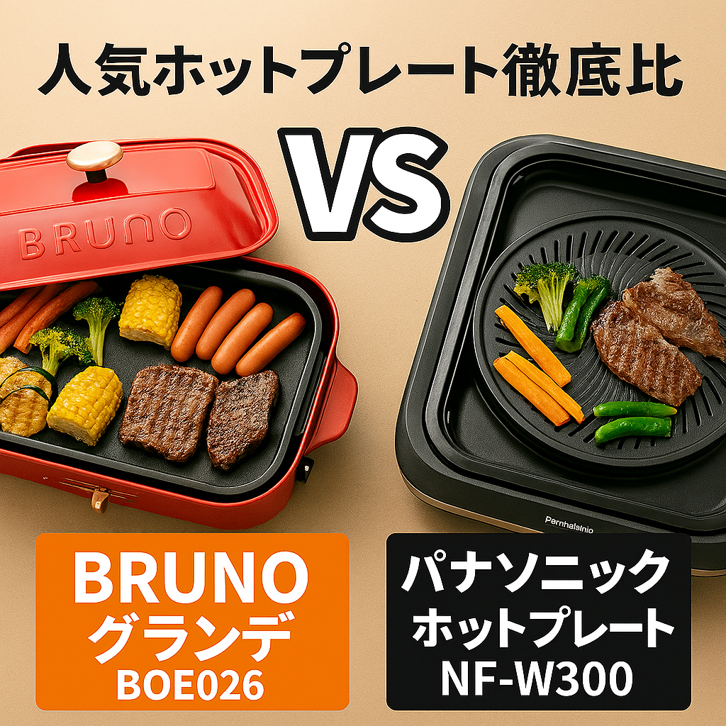 「4〜5人家族に最適な大容量ホットプレートが欲しいけれど、デザイン性のBRUNOか、高性能・高耐久のパナソニックかで迷っている」「見た目だけでなく、実際の火力やお手入れのしやすさも知りたい」