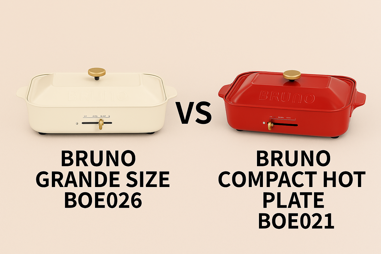 今回比較するのは、BRUNOブームの火付け役となった**【B】コンパクトホットプレート(BOE021)**と、大人数でのパーティーにも対応する大型モデル**【A】グランデサイズ(BOE026)**です。
