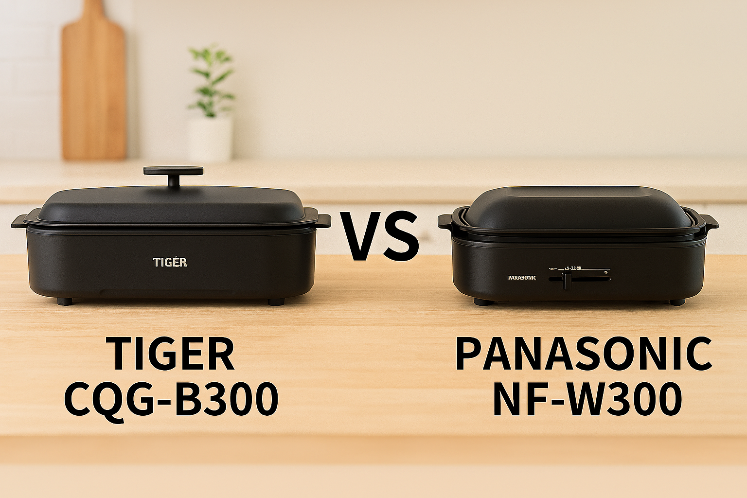 今回、プロの視点で徹底比較するのは、調理家電の老舗ブランドが誇る大型・多機能ホットプレート、【A】タイガーの深型プレートモデル「CQG-B300」と、【B】パナソニックのワイド型モデル「NF-W300」です。