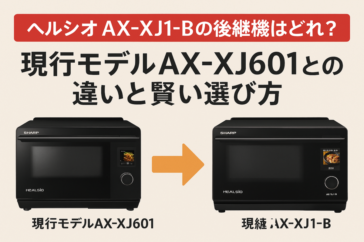シャープの名機「ヘルシオ AX-XJ1-B」。2段調理ができるコンパクトモデルとして人気でしたが、発売から数年が経過し、故障や寿命で買い替えを検討している方も多いはずです。
